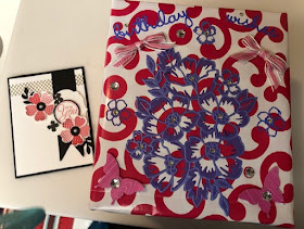 Whoops, how did my two furbabies sneak into my post?! Hah, they are always checking to see what I am doing and investigating my craft room...lol Especially when there are lots of little bits of paper on the floor, which is what happens when I use diecuts. I am loving diecuts and since I discovered that I could make a gift package super beautiful with them, I have been decorating the last few gifts I made with them. It works so well when you have to send the gift through the mail too.So here is the most recent gift I decorated for one of my daughter-in-law's birthday gift along with her card: